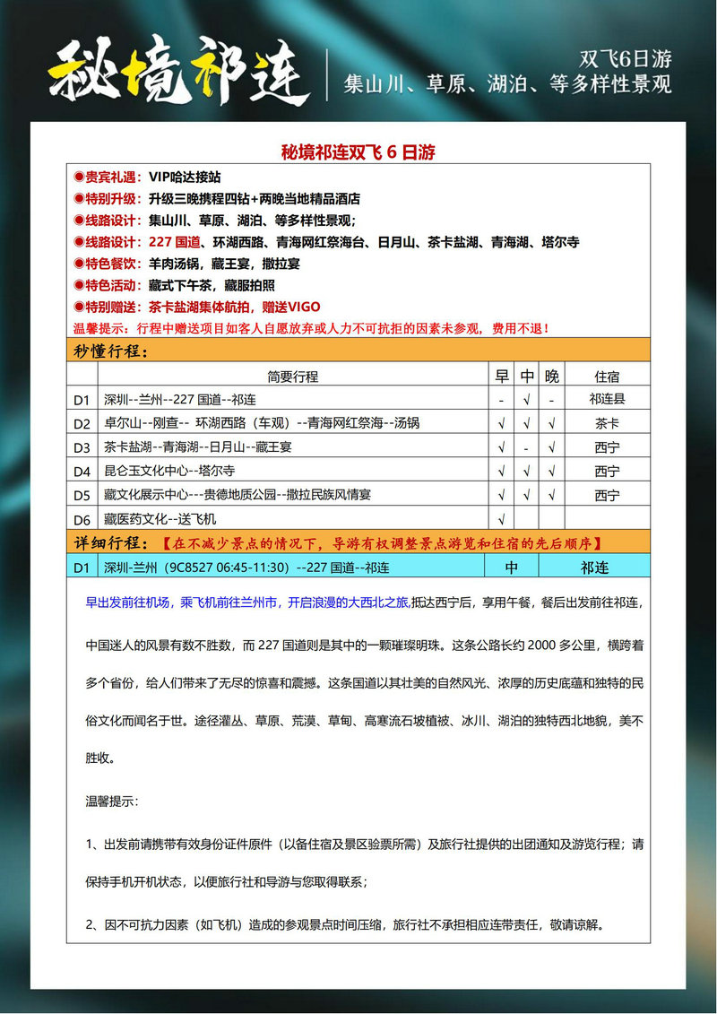 秘境祁连双飞六日游