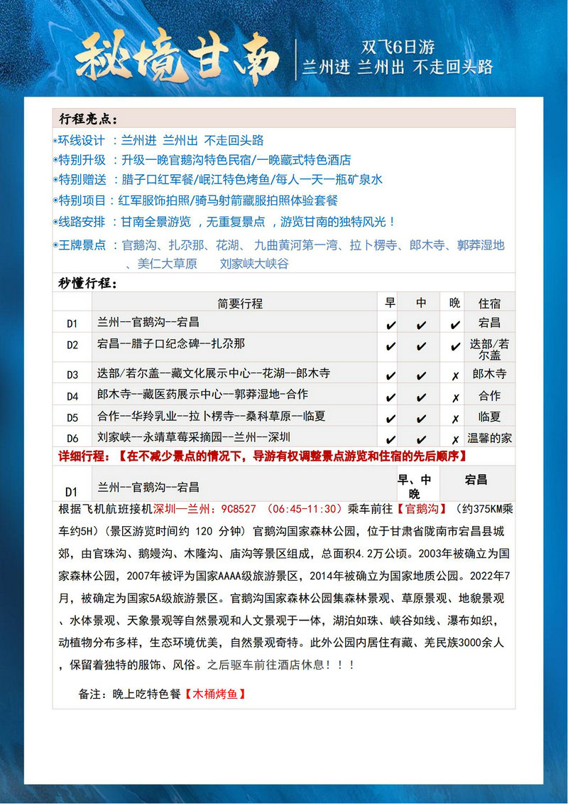 秘境甘南双飞6日